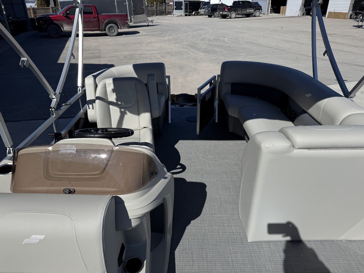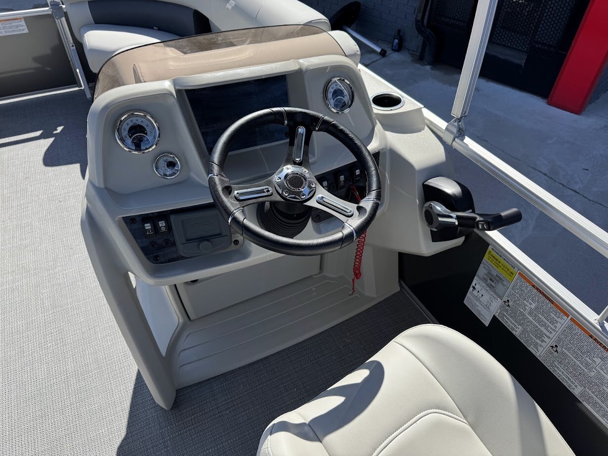 | Sun, fun, and affordability all come together on the Starcraft LX 18 R pontoon boat. This feature-packed vessel is perfect for creating lasting memories on the water with family and friends. The included Bimini top provides shade for everyone on board, ensuring a comfortable cruise no matter the time of day. The captain stays in control with a comfortable low-back bucket helm seat, while the rest of the crew can relax and enjoy the scenery from the plush lounge seating that surrounds the entire perimeter of the boat. This versatile seating arrangement allows everyone to find their perfect spot to soak up the sun, chat with companions, or simply enjoy the ride. Re-entering the boat after a refreshing swim is a breeze thanks to the convenient rear entry ladder. With its focus on relaxation, comfort, and affordability, the Starcraft LX 18 R pontoon boat is the ideal choice for a fun-filled day on the water. |
